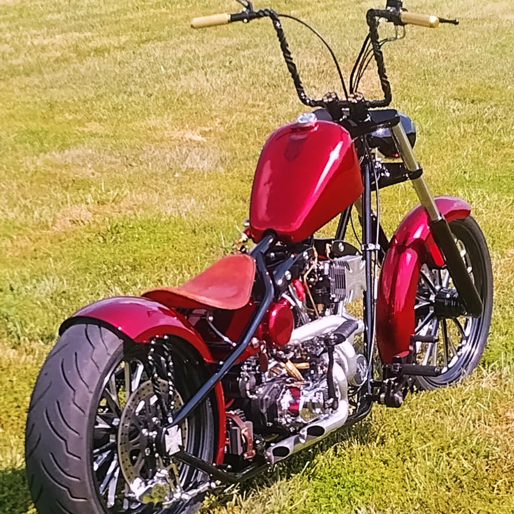 DTM black primer, OG red, and glamour clear.